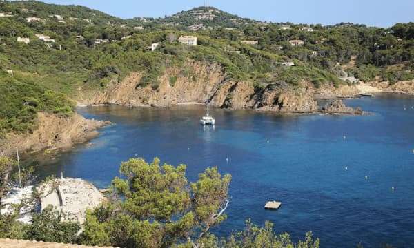Découvrez la grande calanque du Cap Bénat, véritable joyau méditerranéen bordé d’une végétation luxuriante. Poursuivez votre navigation au large de la côte sauvage vers Le Lavandou et Bormes-les-Mimosas, charmants villages typiques du littoral varois. Nuit au mouillage entre le Cap Bénat et le Cap Blanc ou devant la plage de Cavalière.