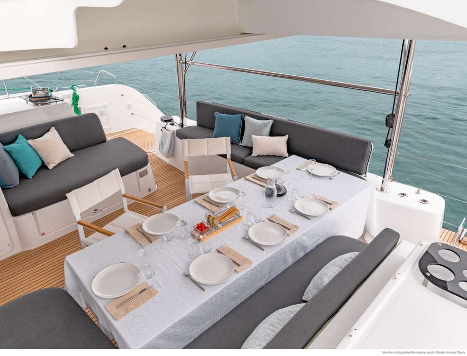 Embarquez à bord de votre Lagoon 46, un catamaran de 14 mètres de long sur 8 mètres de large alliant performance et plaisir de navigation. Lumineux et spacieux, il offre un carré convivial, une cuisine toute équipée et un cockpit idéal, pour partager de bons repas. Depuis le poste de barre surélevé, profitez d’une vue imprenable sur les îles des Seychelles. Allongez-vous sur les trampolines pour ressentir la glisse, ou plongez facilement depuis les jupes arrière équipées d’échelles de bain.