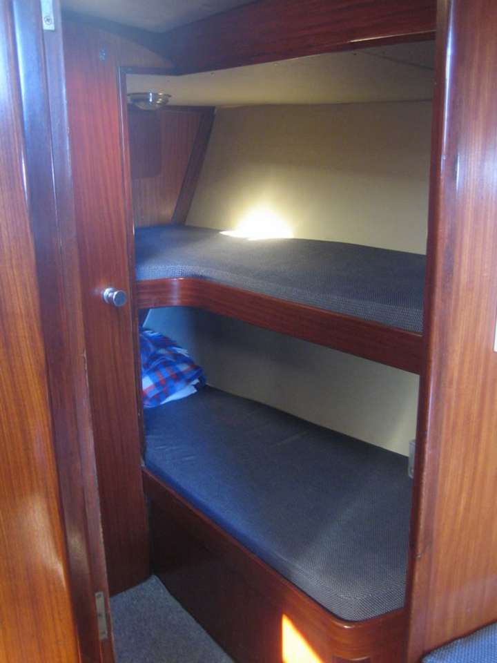 Ce voilier peut accueillir jusqu'à 6 personnes avec ses 4 cabines doubles (2 cabines avec lits doubles et 2 cabines avec lits superposés)*. Vous aurez accès à une salle d'eau et 2 toilettes à partager avec l'ensemble des passagers.