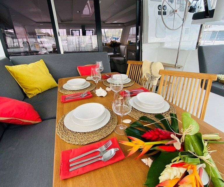 Embarquez à bord d'un Isla 40 pour une expérience de navigation unique au cœur des îles Grenadines. Ce catamaran moderne et confortable est le cadre idéal pour l'apprentissage. Sa stabilité et ses espaces de vie lumineux créent un environnement de travail optimal, pour maîtriser sereinement les réglages de voile et les manœuvres. Grâce à l'approche personnalisée de votre formateur, qui s'adaptera au niveau de chacun, vous avez l'assurance d'une progression efficace et d'une croisière des plus agréables, tout en profitant de mouillages paradisiaques.